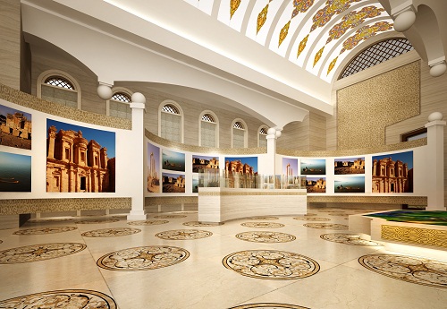 走進(jìn)展館里面,首先映入游客約旦哈希姆王國幾個大字,這樣也是將展館內(nèi)部的異域風(fēng)情顯現(xiàn)的是淋漓盡致,展館里面還擺放著很多展品供游客進(jìn)行參觀,大家既可以看到石器時代的石器,青銅時代的青銅也可以看到古羅馬時期的短劍和面具,同時為了全方位展示約旦國,整個展館也是通過音視頻資料,LED大屏,3D沙盤 以及運(yùn)用聲光影像等高科技手段,來全方位展現(xiàn)約旦國的發(fā)展情況。